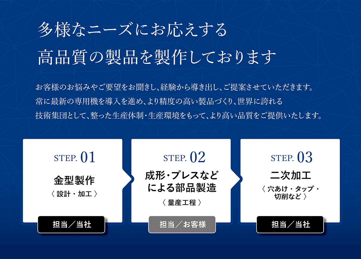 現在までに蓄積されたノウハウで、組立て、仕上げ、納品までワンストップで、短納期・高精度の要望にお応えします。